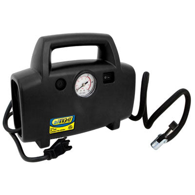 - The 30-inch reinforced rubber air hose, and 6-foot grounded power cord stores conveniently within the inflator.