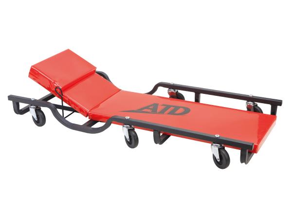 Heavy gauge powder-coated steel frame with radius knockouts for unrestricted arm movement Full 40" length heavy-vinyl padded deck and adjustable head rest 16-3/4" overall width (6) Industrial strength casters with 3" oil, chemical and grease resistant wheels Solid wheel design for added strength with rounded sides for easy movement 300 lbs. weight capacity 2-Year Limited Warranty