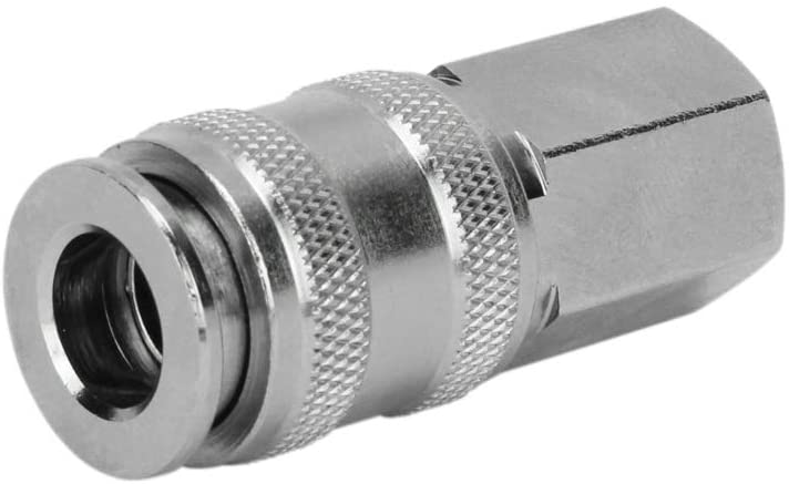 The Milton® 5 In ONE® Universal Quick-Connect Coupler (1/4" NPT) is a durable, heavy-duty steel coupler designed for universal compatibility with Industrial (M-Style®), High Flow (V-Style), Automotive (T-Style), Aro (A-Style), and Lincoln (L-Style) interchanges. Its 6-ball construction ensures long-lasting performance, making it ideal for demanding pneumatic applications.